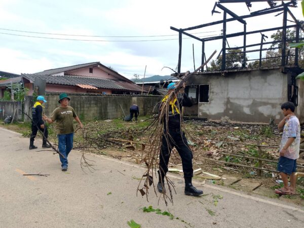 จิตอาสาทหารพราน 32 ช่วยเหลือฟื้นฟูบ้านเรือนประชาชนและมอบสิ่งของให้ประชาชนที่ประอัคคีภัย ในพื้นที่ อำเภอทุ่งช้าง จังหวัดน่าน