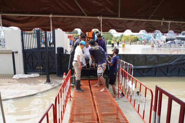 ขณะที่ เจ้าหน้าที่ตำรวจจิตอาสาภัยพิบัติ ตำรวจภูธรจังหวัดสุโขทัย พร้อมด้วยประชาชนจิตอาสา ร่วมกันดูแลผู้ป่วย และประชาชนที่เดินทางและใช้ชีวิตในพื้นที่ประสบภัยน้ำท่วมของอำเภอเมืองสุโขทัย จังหวัดสุโขทัย ด้วยหัวใจจิตอาสา