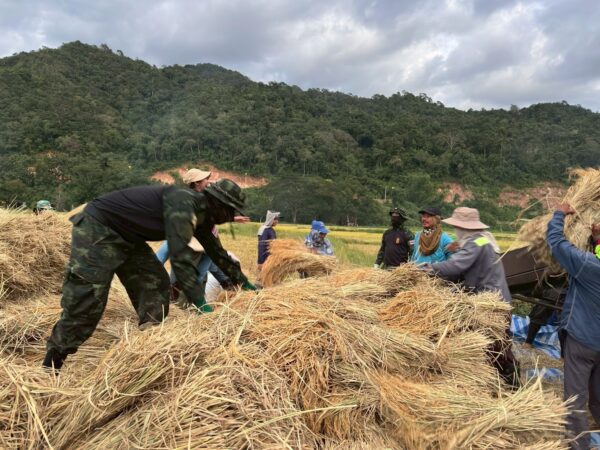 ชุดปฏิบัติการกิจการพลเรือน กองกำลังผาเมือง พร้อมประชาชนบ้านนาขาม ร่วมกิจกรรมช่วยเหลือประชาชนเก็บเกี่ยวผลผลิตข้าวให้แก่เกษตรกร ในพื้นที่อำเภอบ่อเกลือ จังหวัดน่าน