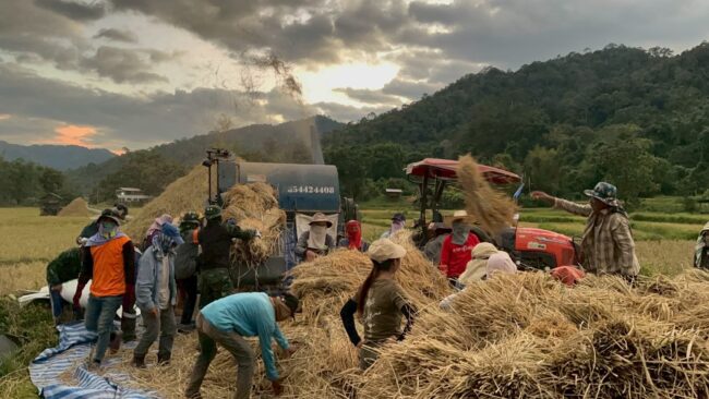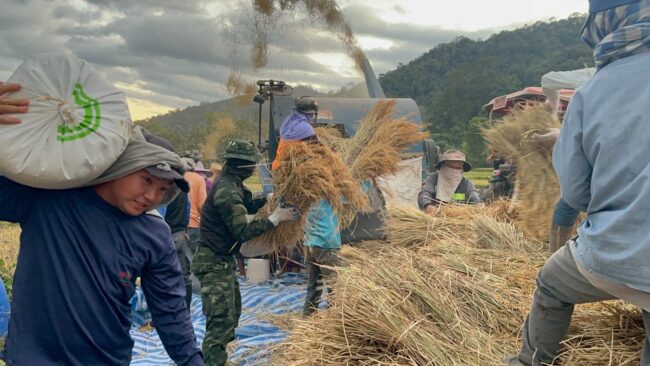 ชุดปฏิบัติการกิจการพลเรือน กองกำลังผาเมือง พร้อมประชาชนบ้านนาขาม ร่วมกิจกรรมช่วยเหลือประชาชนเก็บเกี่ยวผลผลิตข้าวให้แก่เกษตรกร ในพื้นที่อำเภอบ่อเกลือ จังหวัดน่าน