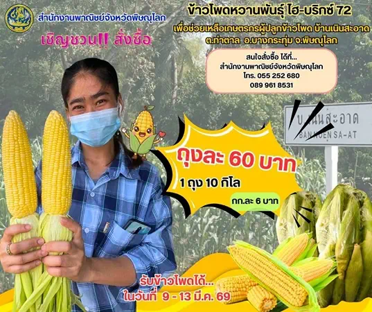 กองทัพภาคที่ 3 [ สำนักงานพาณิชย์จังหวัดพิษณุโลก ] ขอเชิญชวนพ่อแม่พี่น้อง มารับความความหวานจาก ข้าวโพดหวานพันธุ์ ไฮ-บริกซ์ 72 ซื้อ ช้อป ช่วยเหลือเกษตรกรปลูกข้าวโพด อำเภอบางกระทุ่ม จังหวัดพิษณุโลก “สร้างรายได้ สร้างรอยยิ้มให้เกษตรกร”
