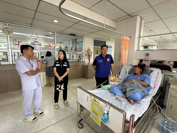 นายอำเภอแม่อาย เยี่ยมให้กำลังใจหญิงชาวบ้านที่ได้รับบาดเจ็บพลัดตกเขาซี่โครงหัก 4 ซี่ ระหว่างทำแนวกันไฟ