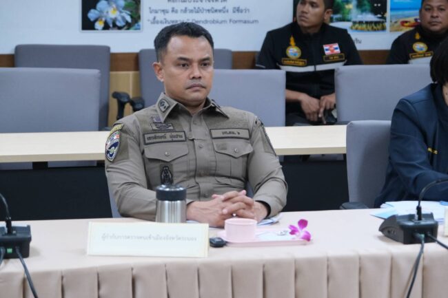 ต่อจากนั้น นายสมบูรณ์ หนูนวล รองประธานคณะกรรมาธิการการทหารและความมั่นคงของรัฐ คนที่หนึ่ง และคณะเดินทาง รับฟังบรรยายสรุปและแลกเปลี่ยนความเห็นเกี่ยวกับสถานการณ์การลักลอบหลบหนีเข้าเมือง การเฝ้าตรวจและการป้องกันตามแนวชายแดน สถิติการจับกุมการสกัดกั้นการหลบหนีเข้าเมืองประจำปีงบประมาณ 2569 จำนวนแรงงานต่างด้าวที่ได้รับอนุญาตอย่างถูกต้องภายในจังหวัดระนอง ผลการดำเนินงานศูนย์ร่วมบริการช่วยเหลือแรงงานต่างด้าว สถานภาพผู้ต้องกักที่อยู่ในความควบคุมของ ตม.จังหวัดระนอง สถิติการผลักดันและส่งกลับแรงงานต่างด้าว รวมทั้งปัญหาและข้อขัดข้องในการดำเนินงานจอง ตม.จังหวัดระนอง สถิติการจับกุมคดียาเสพติดในพื้นที่จังหวัดระนอง รวมทั้งปัญหาที่เกี่ยวข้องกับความมั่นคงแบบองค์รวมภายในจังหวัดระนอง
