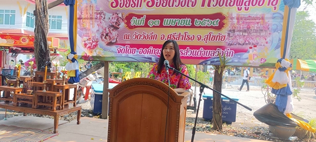 วันนี้ที่ 13 เมษายน 2569 เวลา 09.00 น ส.ส.ขิง นางสาวณัคนางค์ กุลนาถศิริ สมาชิกสภาผู้แทนราษฎรจังหวัดสุโขทัย เขต 1 เป็นประธานพิธีเปิดโครงการร้อยรัก ร้อยดวงใจ ห่วงใยผู้สูงอายุ ประจำปี 2569 และร่วมงานบวชนาคสามัคคี ที่วัดวังลึก ฯ โดยมี นายสมพงษ์ รักแย้ม นายกองค์การบริหารส่วนตำบลวังลึก กล่าวรายงานการจัดงานวัตถุประสงค์ในการจัดงานประเพณีสงกรานต์ โครงการร้อยรัก ร้อยดวงใจ ห่วงใยผู้สูงอายุ ประจำปี 2569