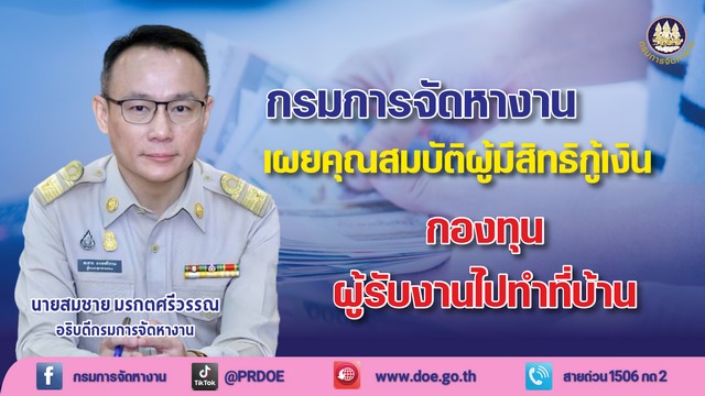 กรมการจัดหางาน แนะวิธีกู้เงินกองทุนเพื่อผู้รับงานไปทำที่บ้าน ดอกเบี้ย 0% นาน 24 เดือน วงเง…