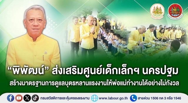 “พิพัฒน์” ส่งเสริมศูนย์เด็กเล็กฯ นครปฐม สร้างมาตรฐานการดูแลบุตรหลานแรงงานให้พ่อแม่ทำงานได้อย่างไม่กังวล