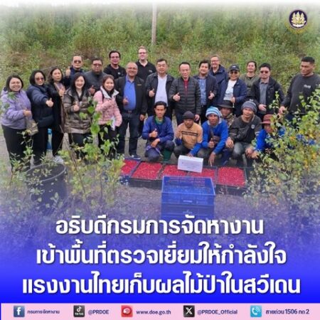 อธิบดีกรมการจัดหางาน ห่วงสวัสดิภาพแรงงานไทย เข้าพื้นที่ตรวจเยี่ยมแรงงานเก็บผลไม้ป่าในสวีเด…