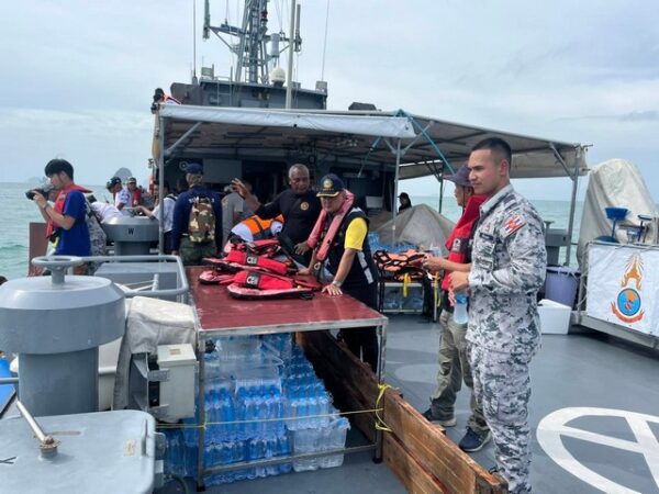 สตูล นำเรือรบหลวง ต114 ขนเสบียงน้ำดื่ม ข้าวสารอาหารแห้ง จำนวนมาก มุ่งหน้าฝ่าคลื่นสูงไปช่วย…