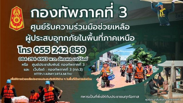 “ศูนย์บรรเทาสาธารณภัย กองทัพภาคที่ 3 พร้อมช่วยเหลือพี่น้องประชาชน จากน้ำหลาก และน้ำท…