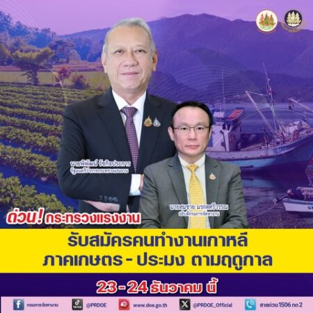 กระทรวงแรงงาน จัดส่งทำงานเกาหลีต่อเนื่อง ภาคเกษตร ประมง รับสมัครด่วน 23 – 24 ธ.ค. นี…