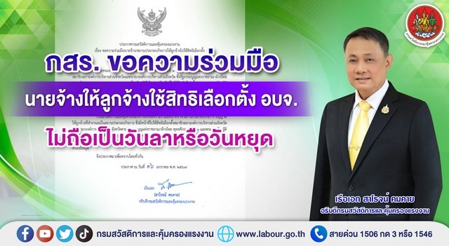 Read Moreกสร. ขอความร่วมมือนายจ้างให้ลูกจ้างใช้สิทธิเลือกตั้ง อบจ. ไม่ถือเป็นวันลาหรือวันหยุด