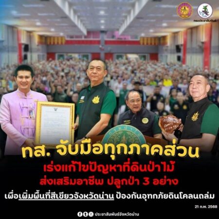 Read Moreทส. จับมือทุกภาคส่วน เร่งแก้ไขปัญหาที่ดินป่าไม้ ส่งเสริมอาชีพ ปลูกป่า 3 อย่าง เพื่อเพิ่มพื้นที่สีเขียวจังหวัดน่าน ป้องกันอุทกภัยดินโคลนถล่ม