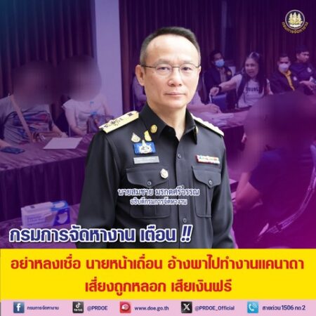 กรมการจัดหางาน เตือน!! อย่าหลงเชื่อ สาย-นายหน้าเถื่อน อ้างพาไปทำงานแคนาดา หวั่นถูกหลอก เสียเงินฟรี
