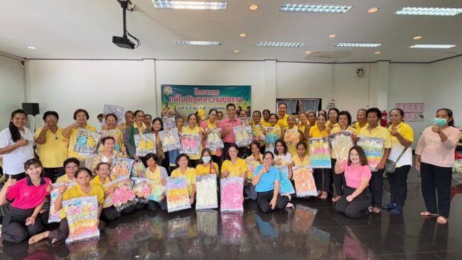 นายก อบต.วังลึก ! จัดโครงการแก้ไขปัญหาความยากจนฝึกทำดอกไม้จันทน์