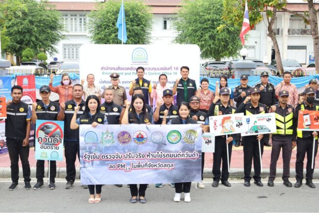 สตูล Kick off กิจกรรม “รัฐเข้ม ตรวจจับ ปรับจริง ห้ามใช้รถยนต์ควันดำ ลด PM2.5” เดินหน้าลดฝุ่นพิษเพื่อสุขภาพประชาชน